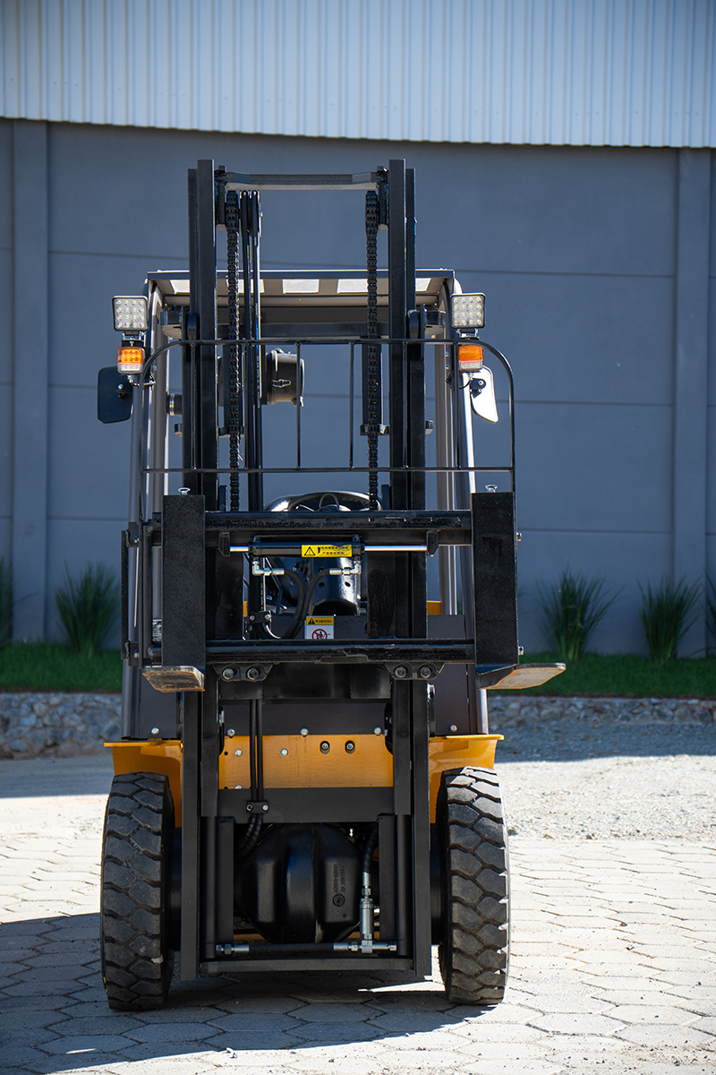 Acessórios que fazem a diferença: iluminação em LED, deslocador lateral com pistão duplo, filtro quádruplo, transmissão YQX, motor Xinchai, banco ergonômico, volante escamoteável, teto em acrílico.